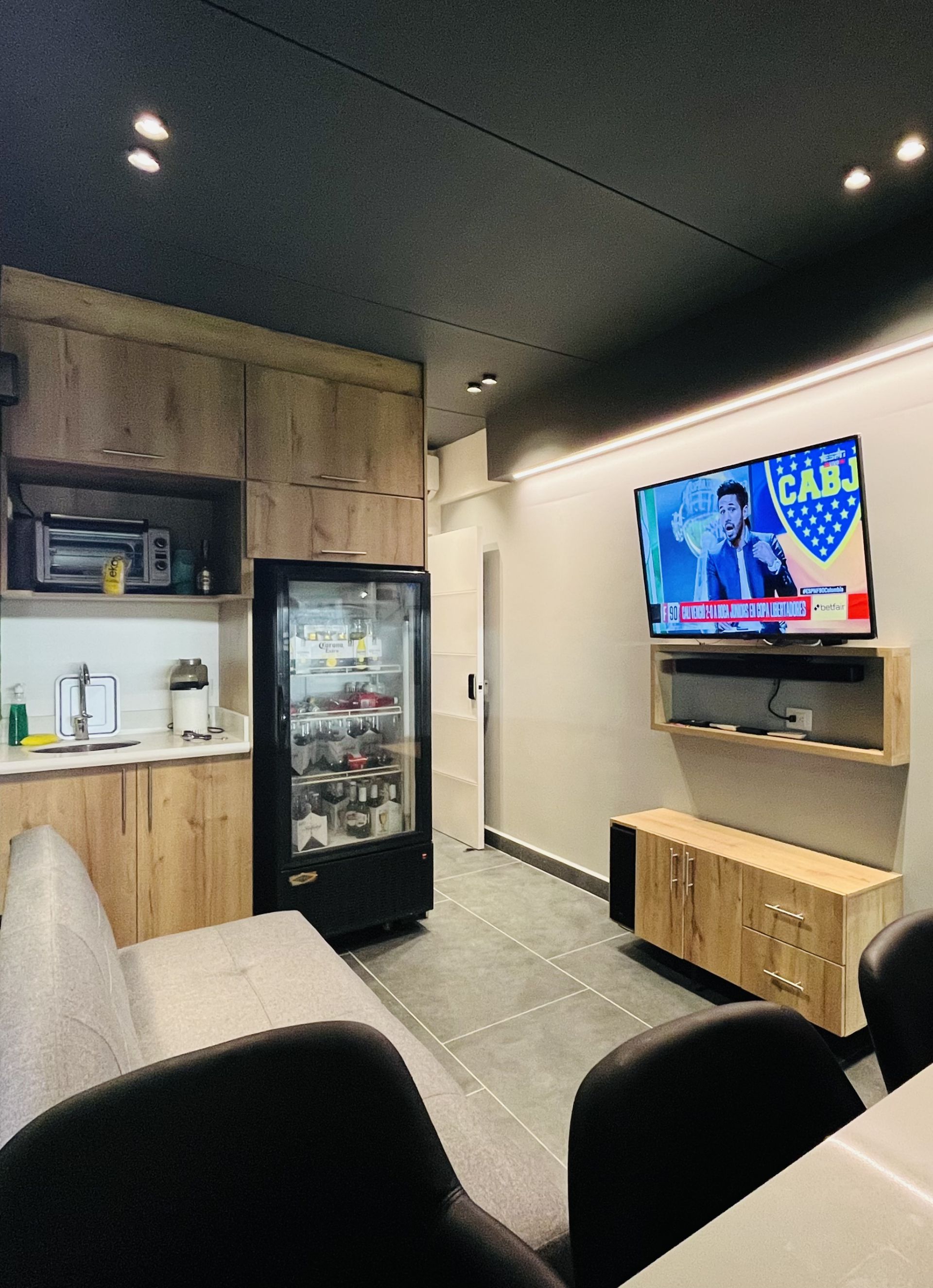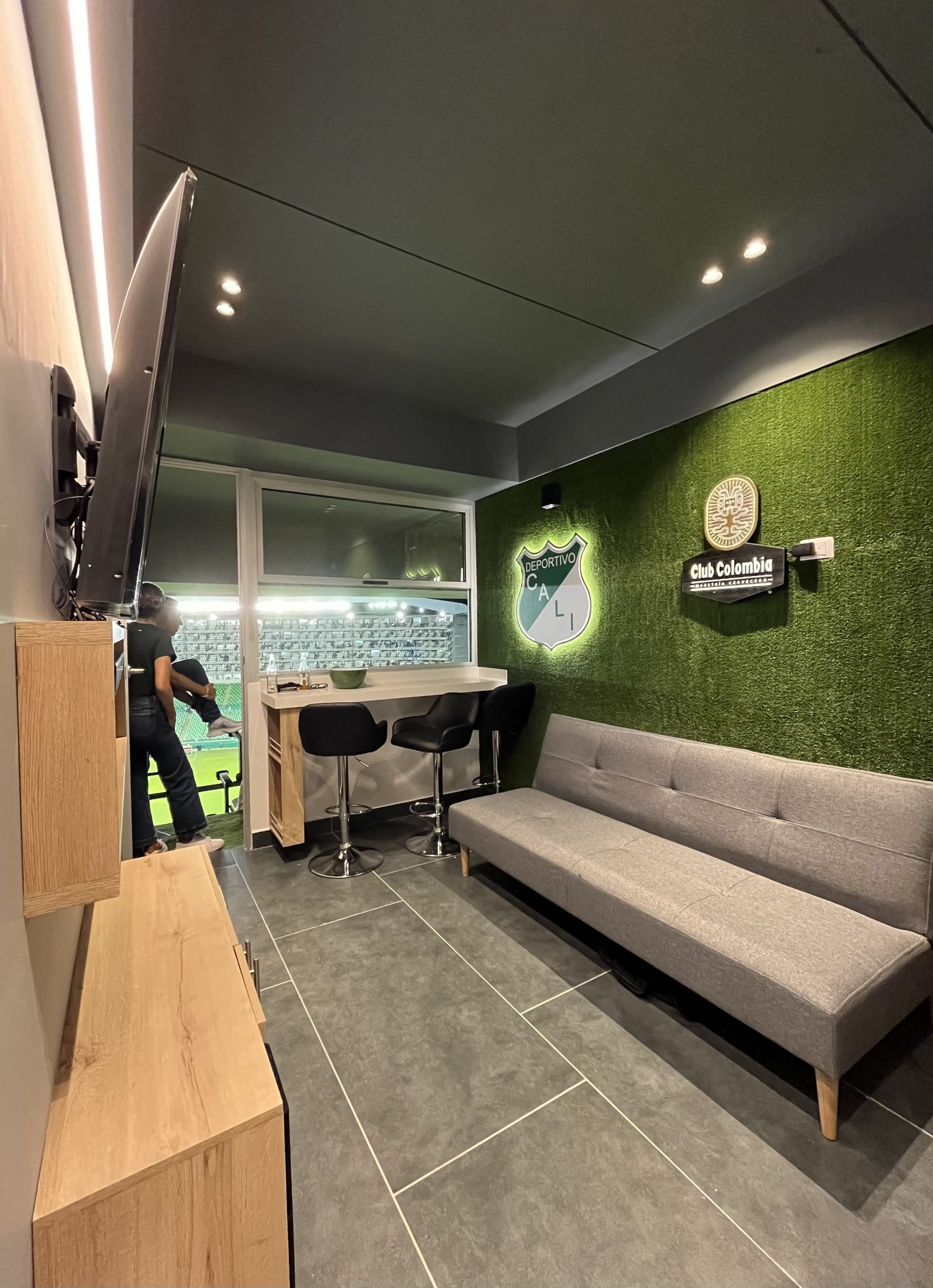 Para este proyecto quisimos crear un ambiente agradable y funcional que ofreciera una experiencia única para sus usuarios. El diseño de esta suite dentro del Estadio Deportivo Cali, aprovecha su privilegiada ubicación para maximizar la vista hacia el campo de juego, integrando elementos contemporáneos que combinan confort y elegancia. Se optimizó la distribución interior para generar espacios versátiles que pueden adaptarse a diferentes usos, desde reuniones privadas hasta momentos de relajación durante los eventos deportivos. La selección de materiales y acabados busca reflejar la identidad del club, incorporando detalles que evocan la pasión por el deporte y la exclusividad. La iluminación y el mobiliario se diseñaron para potenciar la atmósfera acogedora y dinámica, haciendo de esta suite un espacio único dentro del estadio, ideal para vivir la emoción del fútbol desde un entorno moderno y confortable.