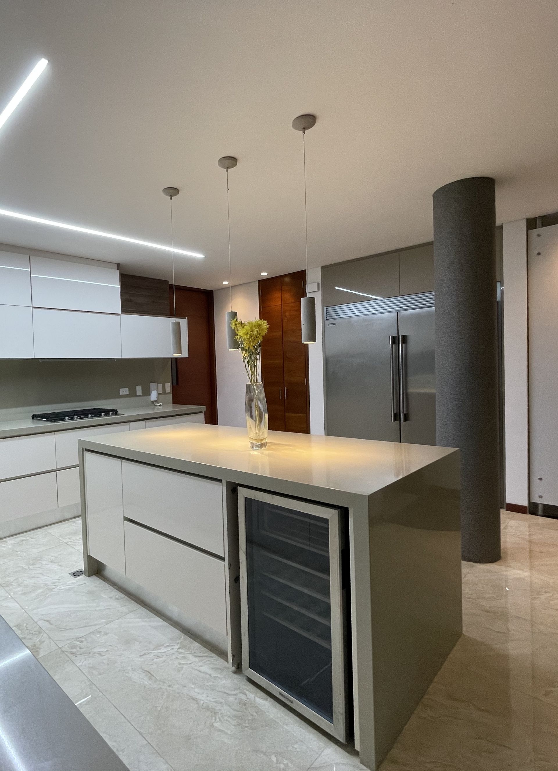 La remodelación de esta casa en una zona privilegiada de la ciudad se centra en la creación de un espacio que combina elegancia y funcionalidad, integrando la piscina como un elemento clave del diseño arquitectónico. La intervención busca potenciar la relación entre el interior y el exterior, generando una continuidad visual y espacial que invita al disfrute y a la relajación. Se emplearon materiales nobles y acabados modernos que resaltan la calidez y la sofisticación, mientras que la piscina se concibe no solo como un área de esparcimiento, sino como un espejo de agua que amplifica la sensación de amplitud y conexión con el entorno natural. La distribución se optimizó para maximizar la iluminación natural y la ventilación, creando ambientes frescos y confortables que reflejan un estilo de vida contemporáneo y exclusivo. Este proyecto representa la fusión perfecta entre arquitectura, paisaje y bienestar, transformando la casa en un oasis urbano.
